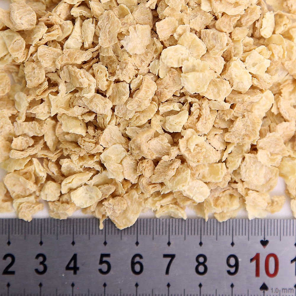 該產(chǎn)品是將分離蛋白、大豆?jié)饪s蛋白、低溫豆粕、谷朊粉、淀粉依產(chǎn)品配方比例經(jīng)擠壓膨化、高溫高壓處理而成,具有良好的吸水性、保油性和類似肉的纖維結(jié)構(gòu),富有咀嚼感,是一種理想的高蛋白肉制品添加物、休閑豆制品的輔料。產(chǎn)品類型包括TW系列、TB系列